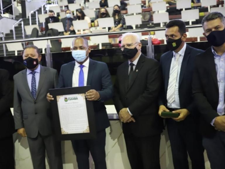 Os parlamentares entregaram a honraria ao pastor Silas Paulo de Souza, presidente da Assembleia de Deus de Cuiabá, representando todos os integrantes das igrejas na Capital.