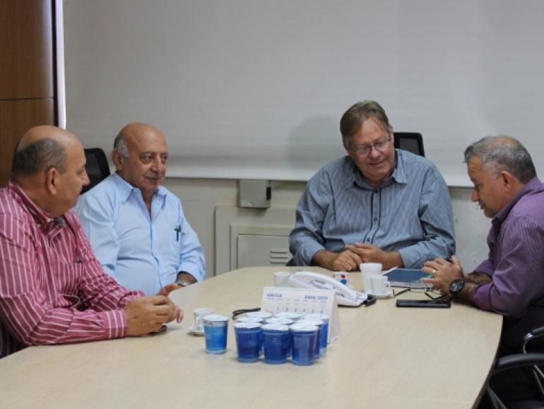 A fim de se inteirar sobre o processo de reabertura da Santa Casa, o presidente da Câmara Municipal de Cuiabá, Misael Galvão (PSB) e os vereadores Ricardo Saad (PSDB) e Delegado Marcos Veloso (PV) se reuniram com o secretário de Saúde de Mato Grosso, Gilberto Figueiredo na manhã desta quarta-feira (15).