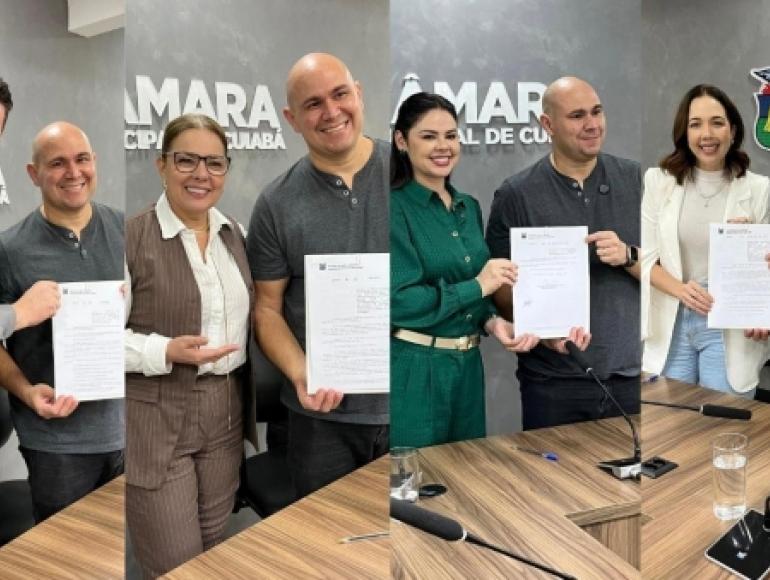 O prefeito Abilio Brunini (PL) sancionou, na tarde desta terça-feira (17), dez leis de autoria de vereadores da Câmara Municipal de Cuiabá. O ato aconteceu na sala das Comissões da Casa e contou com a presença dos parlamentares Rafael Ranalli (PL), Paula Calil (PL), Michelly Alencar (União Brasil) e Maysa Leão (Republicanos).