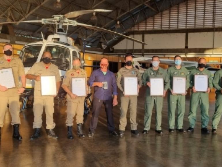 O vereador Sargento Vidal (Pros) entregou, na tarde desta terça-feira (04.05), nove moções de aplausos aos profissionais do Centro Integrado de Operações Aéreas (Ciopaer) e Corpo de Bombeiros Militar como forma de reconhecimento  por salvarem a vida de uma mulher que estava se afogando no Rio Cuiabá na semana passada.