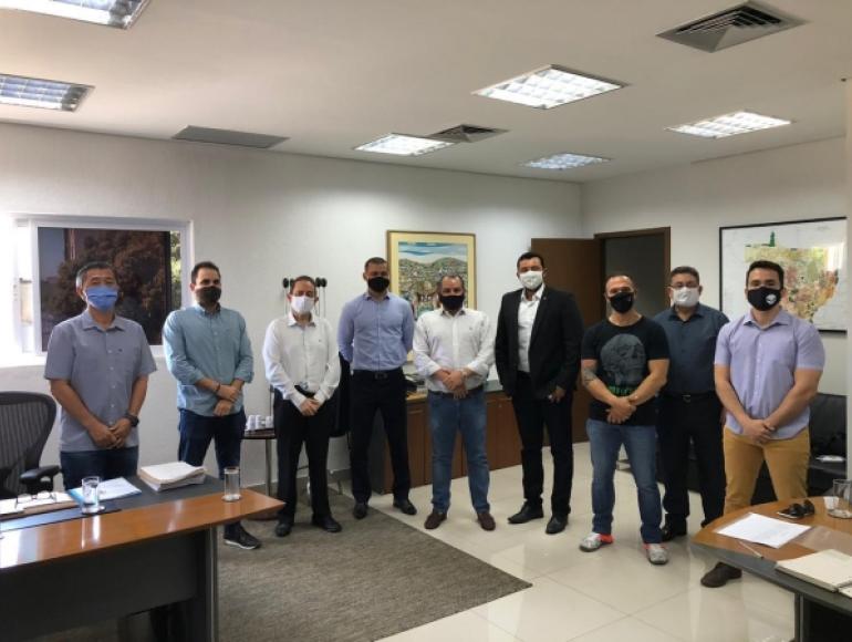 Na manhã dessa segunda-feira, o Vereador Vinicyus Hugueney foi recebido juntamente com os representantes das academias de Cuiabá, pelo Secretário de Desenvolvimento Econômico César Miranda, o Secretário de Esporte Cultura e lazer, Allan Kardec e o presidente da Desenvolve MT Jair de Oliveira Marques.